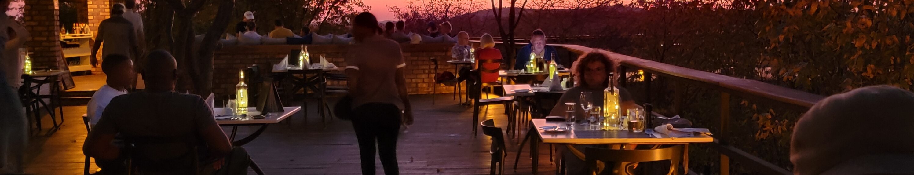 Sort by Finally have rental car and ready to go Power lines along the highway with odd blocks A warm greeting at each lodge The deck for sunset viewing Pano from our cabin View out from cabin Desert scenery Other cabins from this resort along the hillside Feet up time to relax Dinner out on the deck as the sun sets African desert sunsets never fail to amaze It just goes on And on Dinner with my love The path back to our cabin My buddy Seymour Enjoying some cool water Taking a stretch on our balcony where he slept Robs pic of the sunset reflection in my wine Another sunset WindhoekEtosha Game Drive