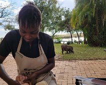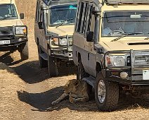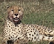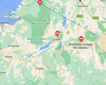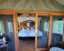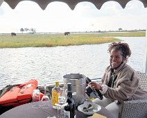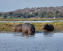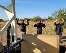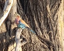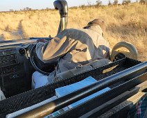 Sort by Red markers on the map show our four trips in Africa Botswana first in the middle then South Africa next then Namibia on the left next then Tanzania upper right last First of twenty three flights overnight to Dublin business class Two days in Italy to start time acclimating and eat pizza Attendants spray the plane on the fourth flight from Cairo to Johannesburg The three stops in Botswana were Chobe River first then Moremi Crossing and Rra Dinare in the Okavango Delta Three day stay in Kasane at small lodge with barbed wire fences A nice lookout to watch the river for game But protected behind electric fences in the lodge since the town is not fenced Leaving before sunrise on our very first game drive The first big animal sighting was so exciting This lilac breasted roller became the picture we always wanted to capture The first pride of thirteen lions was so exciting to see They were down by the river and she was the lookout The first of many types of antelope in Africa On the evening game drive we learn what can happen when coming upon a breeding herd Here is mama in front of us and the bull behind us does not like us between them Botswaa is home to 130,000 elephants and 50,000 are in Chobe National Park Here is where we learned that giraffes are very shy by nature And lions are lazy here is a bachelor group sleeping it off Robs Favorite Africa Pictures