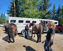 Sort by Young Remy, the new kid in the herd Horses in the pasture at the house Getting ready for a day ride Addie prepping Rooster Just a couple hour ride in town Addie on Virgil Debs, Addie and Jackie riding All six big boys in the pasture Sleeping side by side At Wright Air getting ready to fly to camp Driving a plane into the hangar for maintenance Loading up our Helio Debs and Mattie in the back seat Ready for take off Mattie Dog's first flight She did fantastic Across the flats south toward the Wood River Mattie just chilling out Here's the Wood River, very very low The runway in sight Wood River 2024Wood River 2025 Blueberries