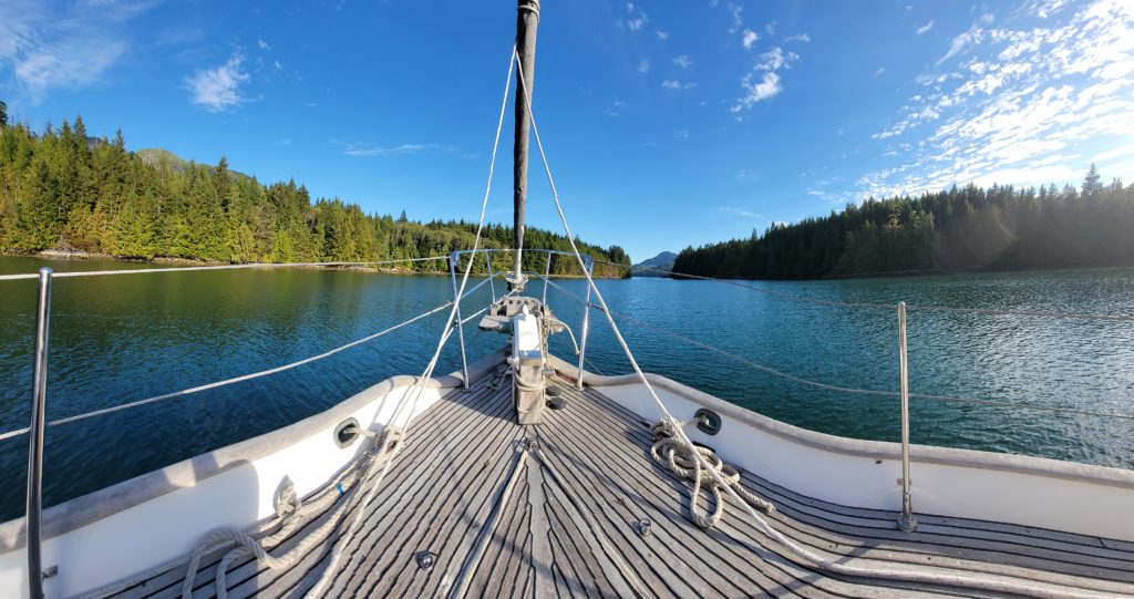 In the morning we headed toward the next destination, a bay at the mouth of Nootka Sound called Friendly Cove. It’s the home of a First Nations village called Yuquot, which means “Winds from many directions”. It is also a harbor with so much history, Elsie has a great writeup in her book. But the winds were channeling strong up the inlet and Nootka Sound was super stinky when we turned out of the inlet. So we decided another night in our little cozy quiet bay sounded better than pounding down to what could be a breezy night. So we turned a 180 and headed back up to Bodega Bay.