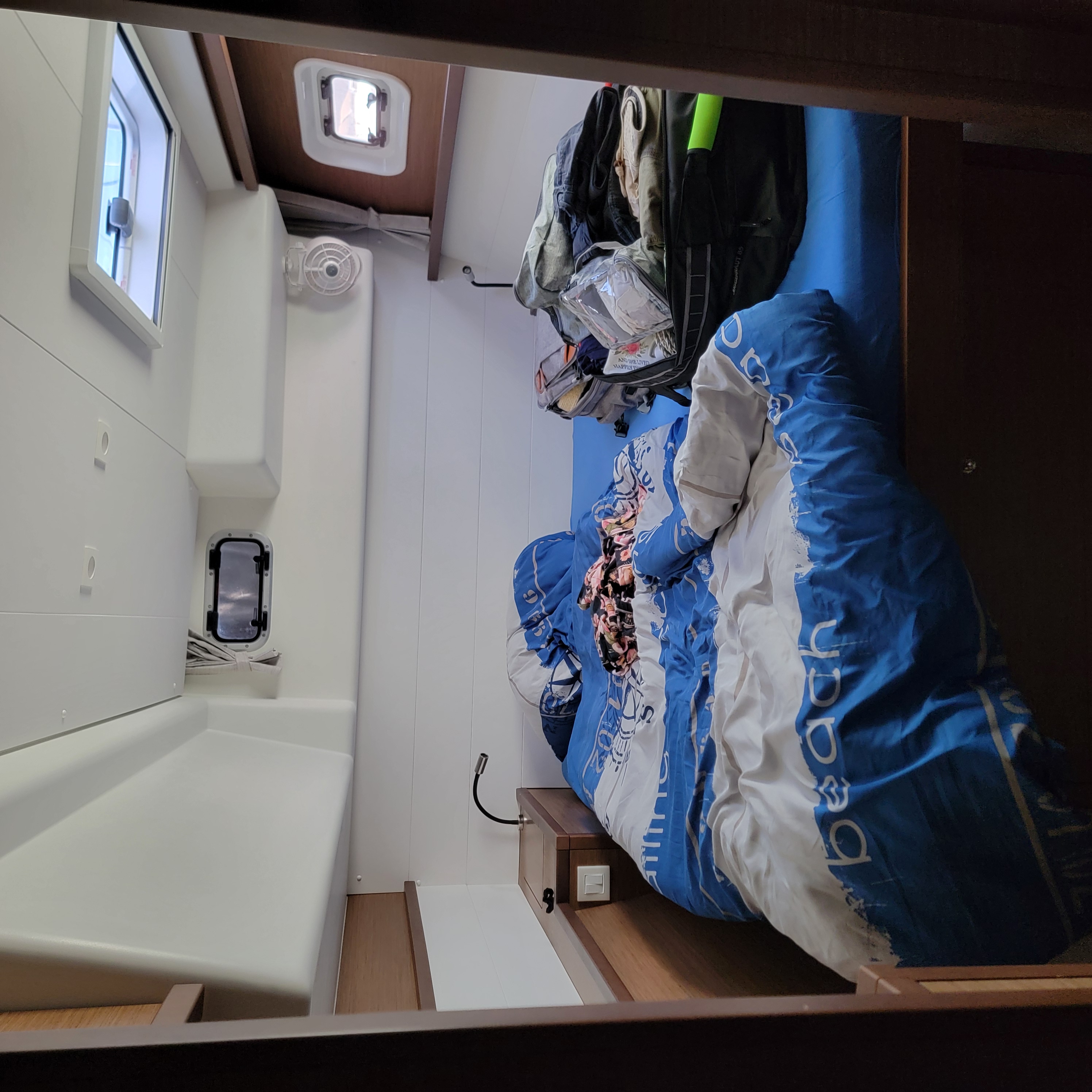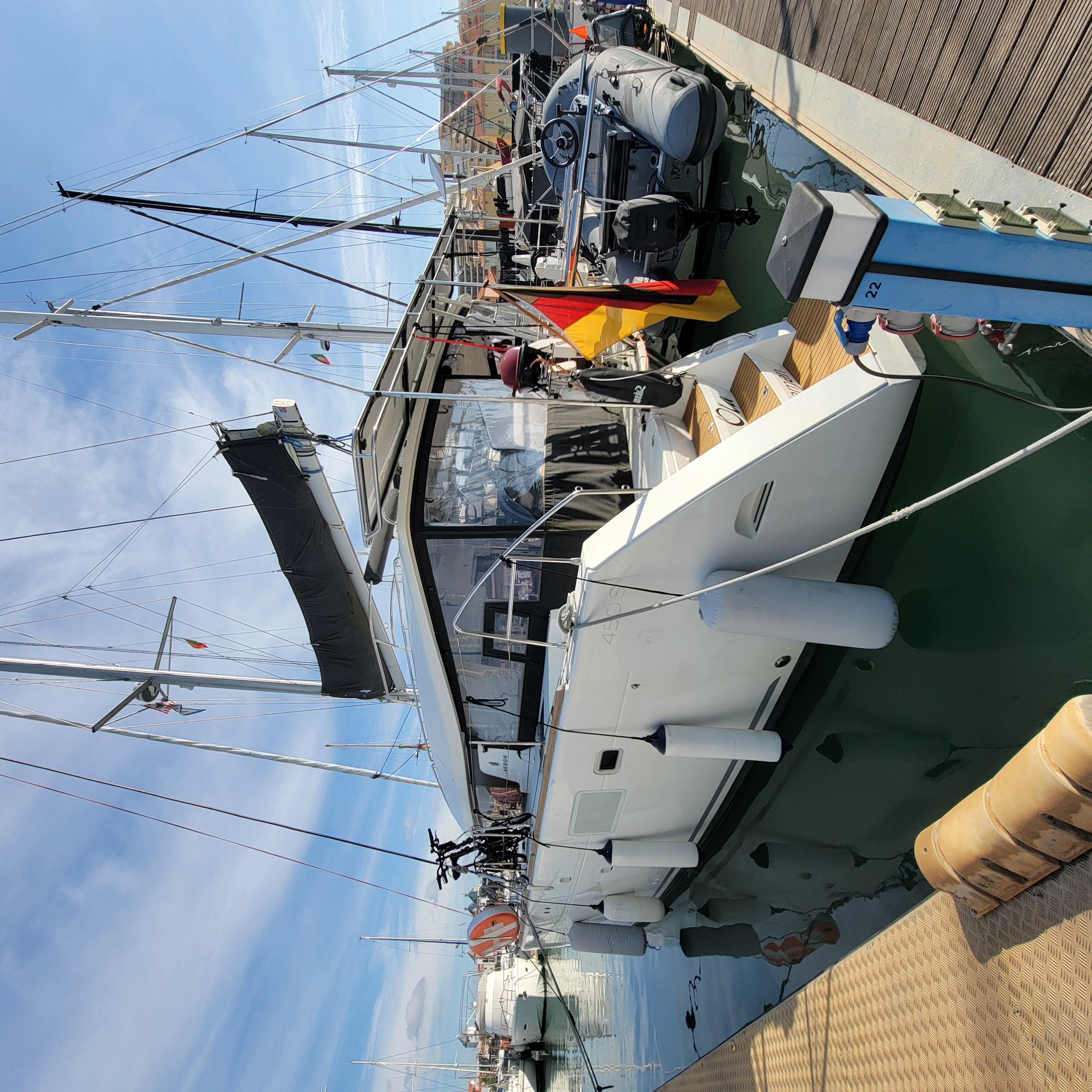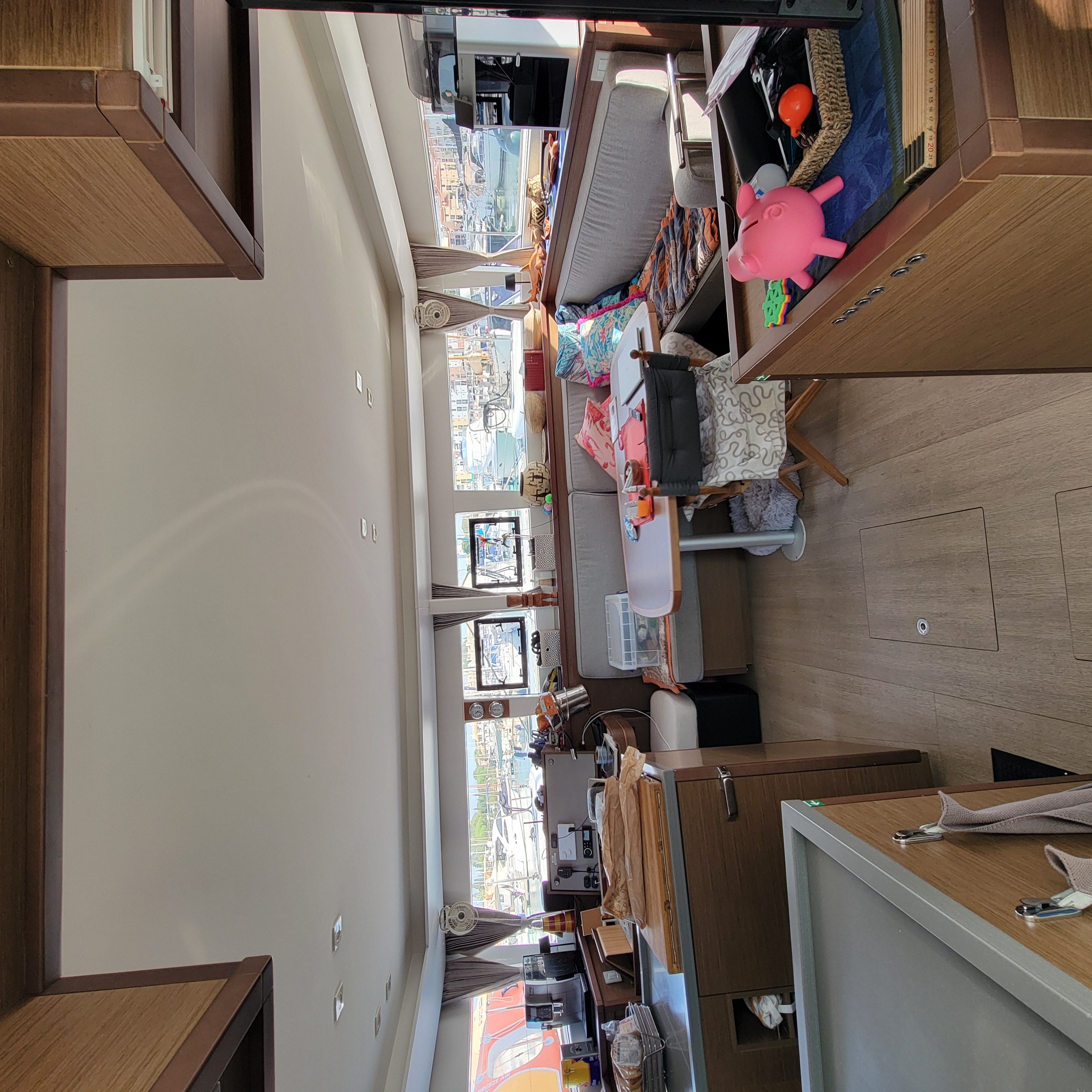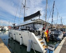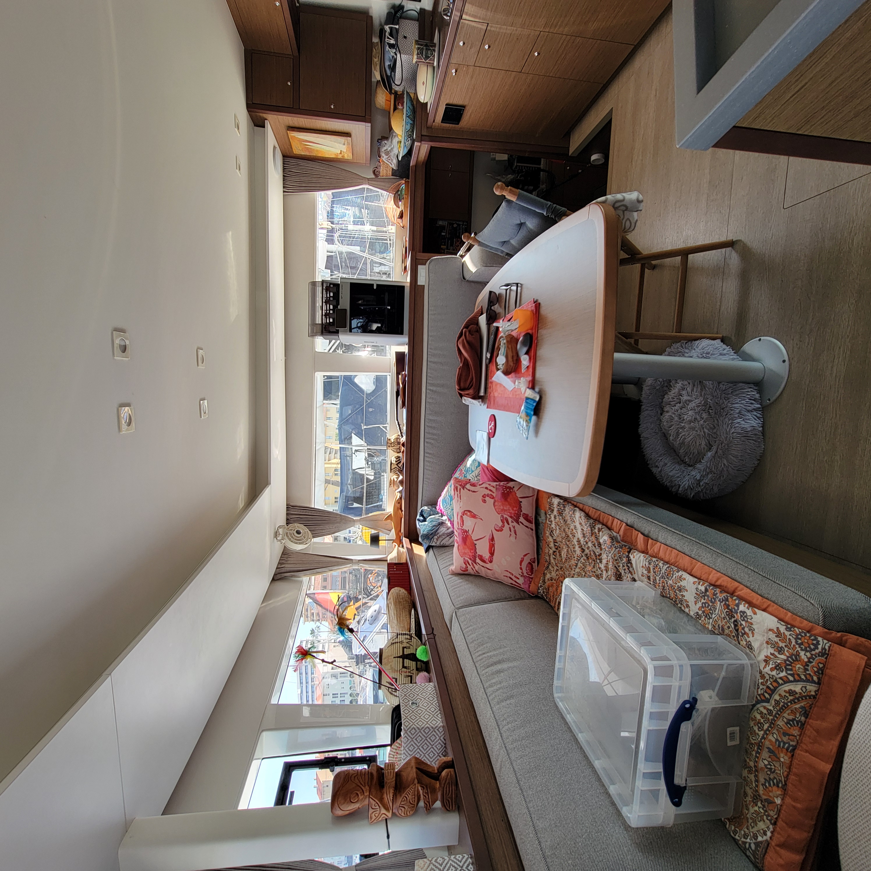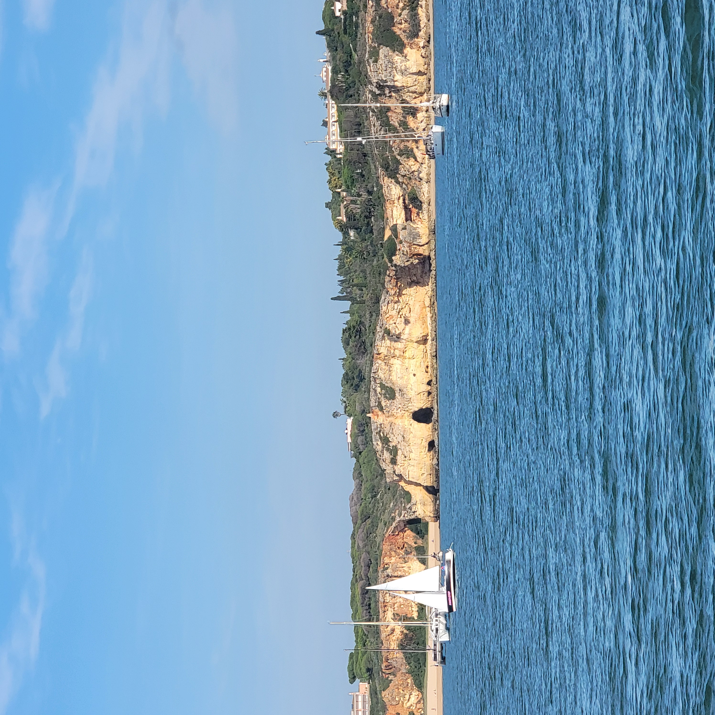Sort by La Ola at the dock at Villamoura La Ola at the dock at Villamoura Captain Blue Bear still on duty Big cat with spacious living area And ginormous galley My cabin A cabin fit for a gatito, although he was very shy No need to sit inside when it is so warm, even in November Taking a day trip westbound Local kids out sailing Britt driving with autopilot on a very windless day. Very porous limestone coastline with lots of caves And nice beaches And lighthouses Another pretty coastal village Lovely old light house, ugly new light Portimao, across from where we anchored Entrance to harbor Our overnight anchorage Across the harbor Wash DCCanary Islands