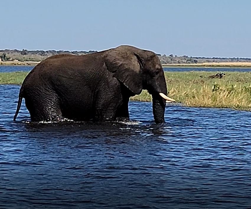 Sort by The elephants swim across the river to find fresh grass on the islands Although this time of year it is getting drier and the grass has already been cut short They take no notice of our little boats sitting quietly and watching them Our boat captain gets us up close for great shots and videos Water buffalo grazing in the Chobe River It looks like it could just hop aboard the boat but is busy cooling off The elephants come down from the park and across the river to forage for grass Chobe Second Morning Game Drive VideosMoremi Crossing