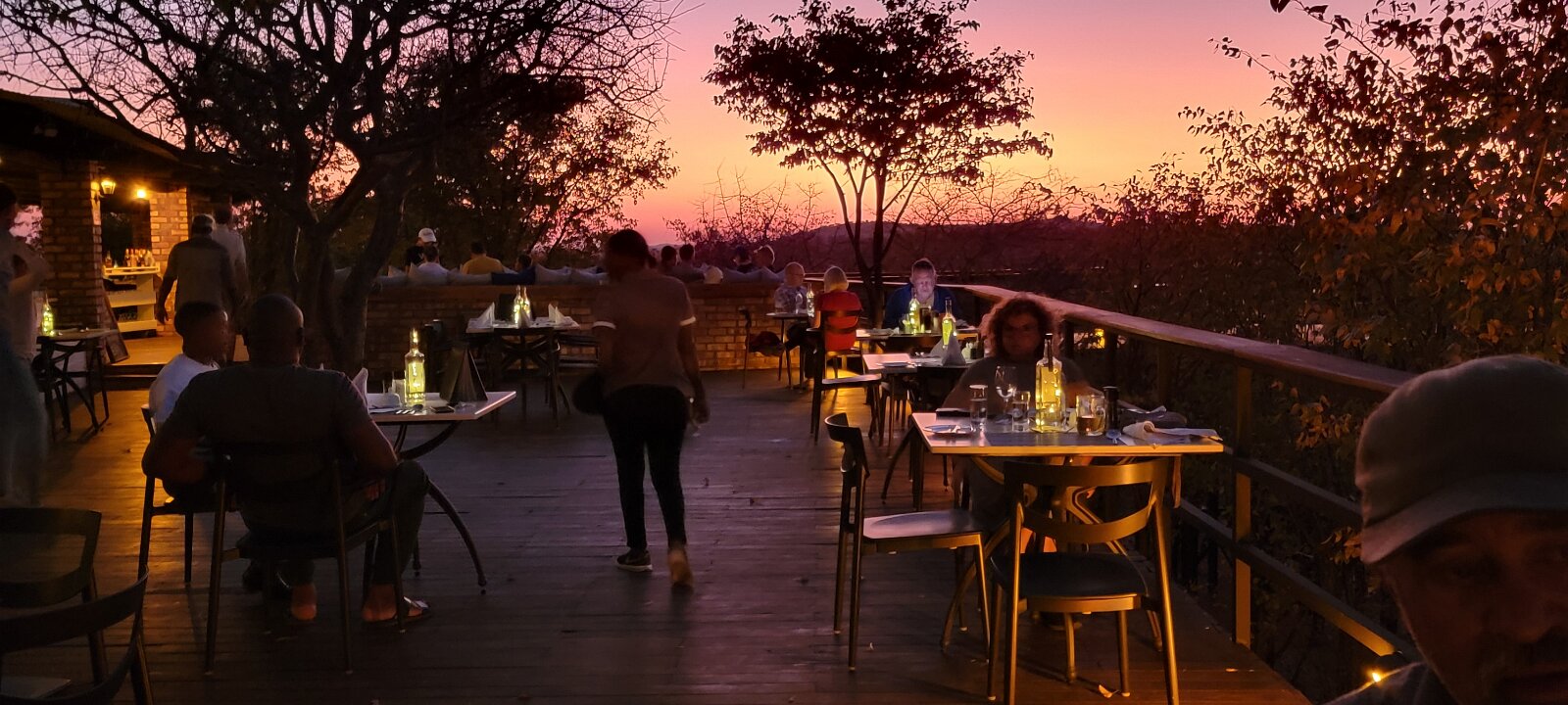 Sort by Finally have rental car and ready to go Power lines along the highway with odd blocks A warm greeting at each lodge The deck for sunset viewing Pano from our cabin View out from cabin Desert scenery Other cabins from this resort along the hillside Feet up time to relax Dinner out on the deck as the sun sets African desert sunsets never fail to amaze It just goes on And on Dinner with my love The path back to our cabin My buddy Seymour Enjoying some cool water Taking a stretch on our balcony where he slept Robs pic of the sunset reflection in my wine Another sunset WindhoekEtosha Game Drive
