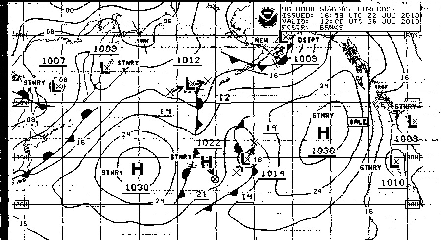 It helps to have a sense of humor, especially when it comes to weather forecasts. As Teresa reported, our 4-day forecasts from NOAA are the worst case, cover-our-bureaucratic-asses sort of forecast. Of course, I shouldn’t say this until we’re behind that breakwater in Port Angeles or we’ll see one of these 4-day wonders actually come true.