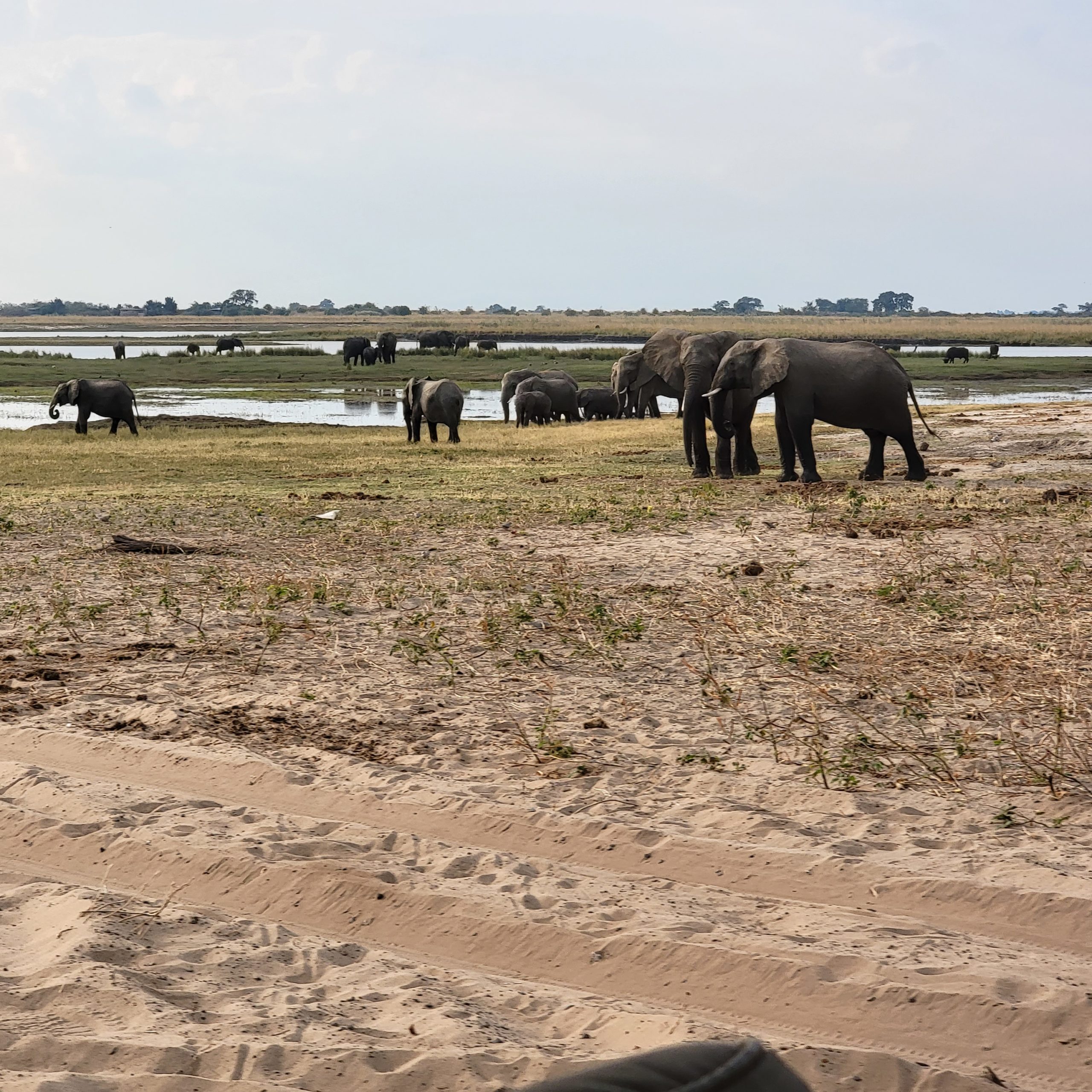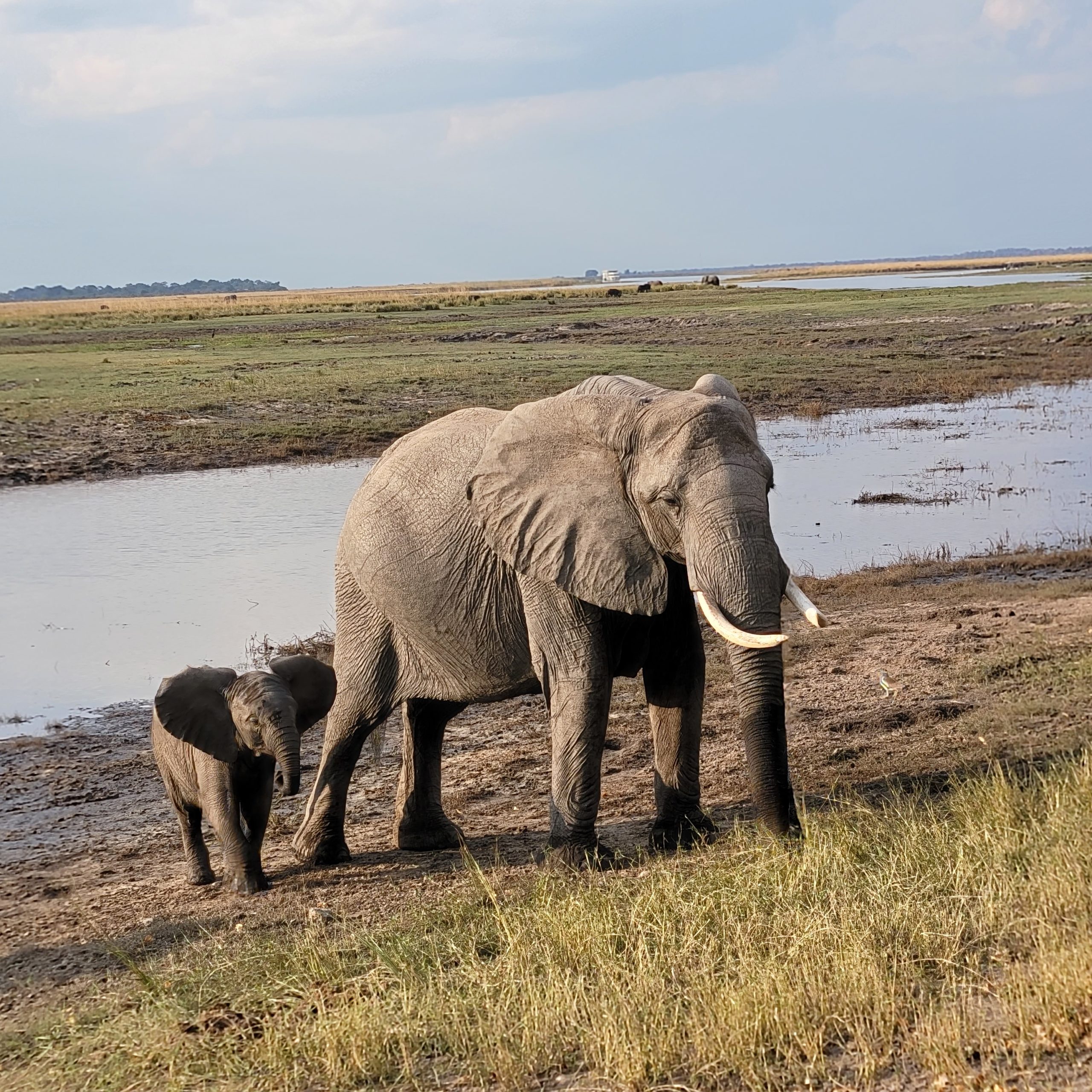 We learned a lot today about the herds and relationships between the elephants. Botswana is home to 130,000 elephants, and more than 50,000 live in Chobe National Park. We’re told that in the rainy season you’ll see the entire river floodplain covered with thousands of elephants. There are so many there that the babies get lost from their mothers and their herd. But since elephants are very emotionally sensitive animals, another herd always takes care of the lost baby until it finds its way home again. At about age nine the baby boys start having, shall we say, inappropriate feelings for siblings and grandma (eek), so mom throws them out of the herd. They hang around for a few years in close proximity, but eventually find others to make another herd with.