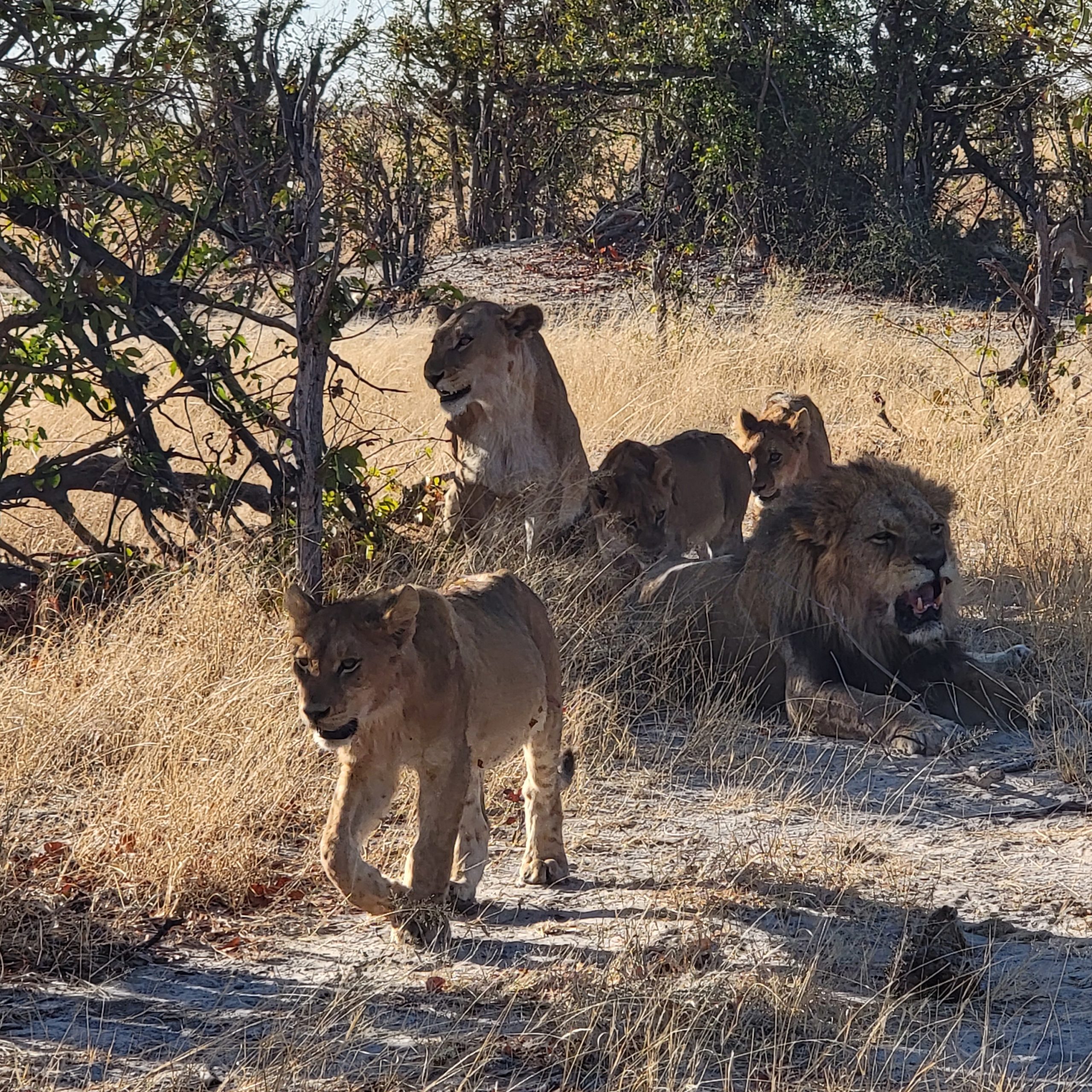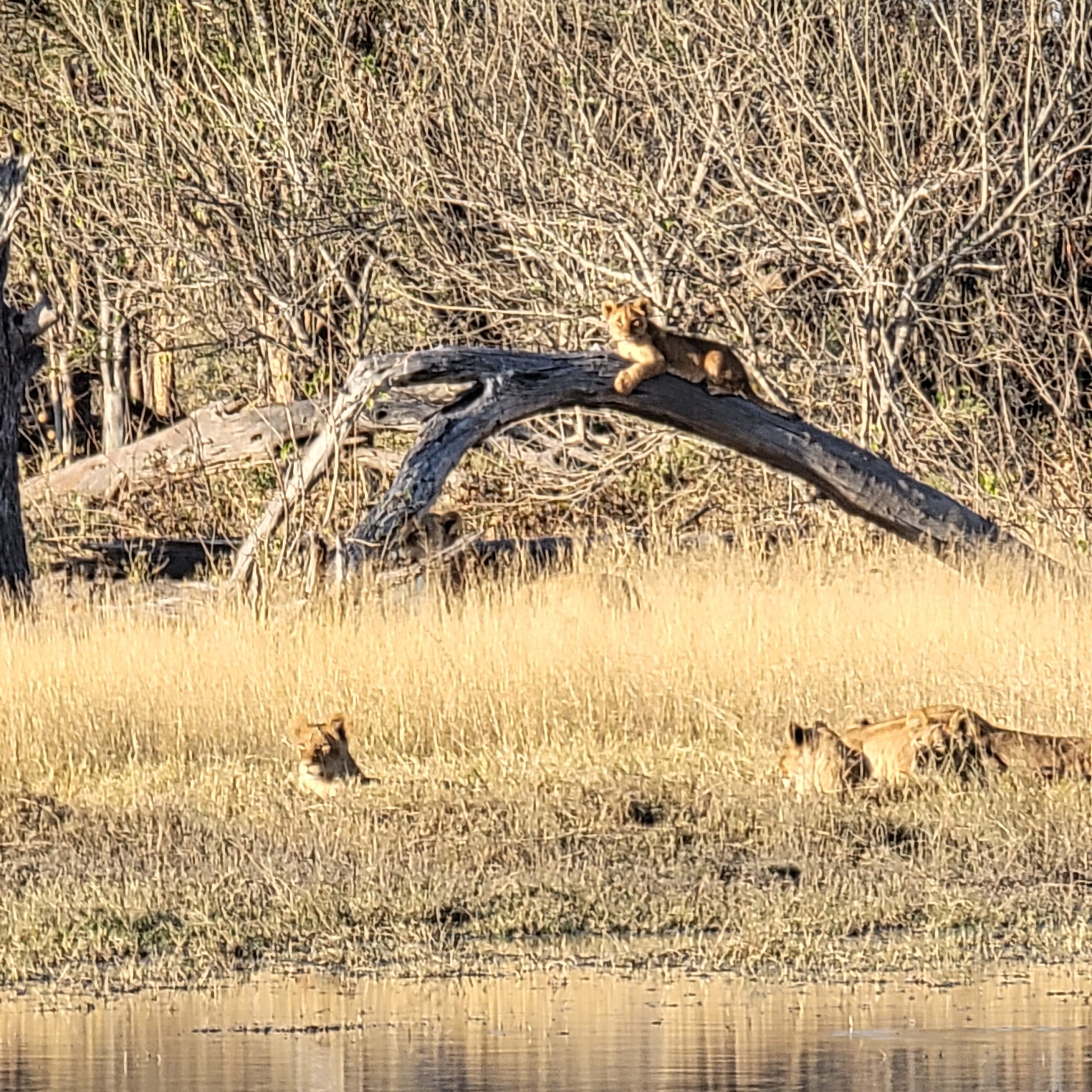 An hour later we were at the sighting of a pair of lionesses and their cubs. We watched them for a while until the sun started getting low and the lionesses wandered off to start looking for dinner.