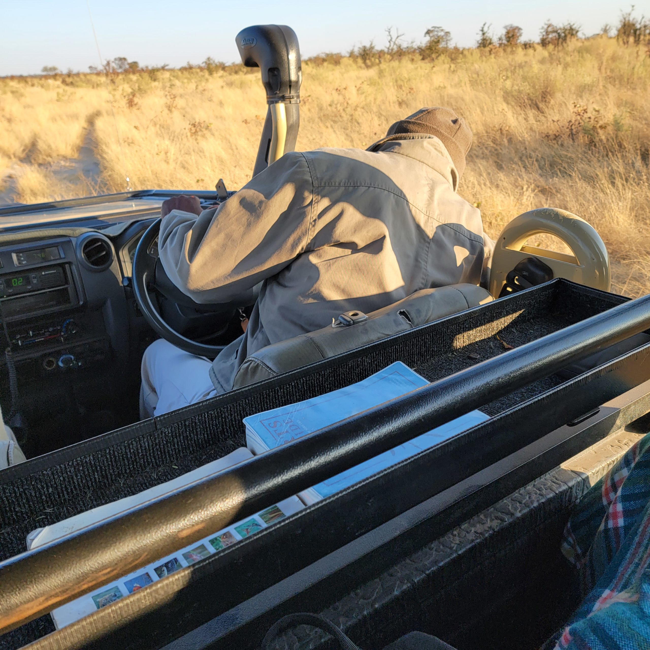 At Rra Dinare Rob and I had most of our drives alone with our guide and his uncle. The other folks in the camp were in a big group of 11, with four siblings who had grown up in Botswana and now lived in four different corners of the planet. Alco told us first thing that he had another guide watching a leopard for him so he knew where it was going to be for us. And he drove us straight out to the sighting. It was a great start to our first drive at Rra Dinare!