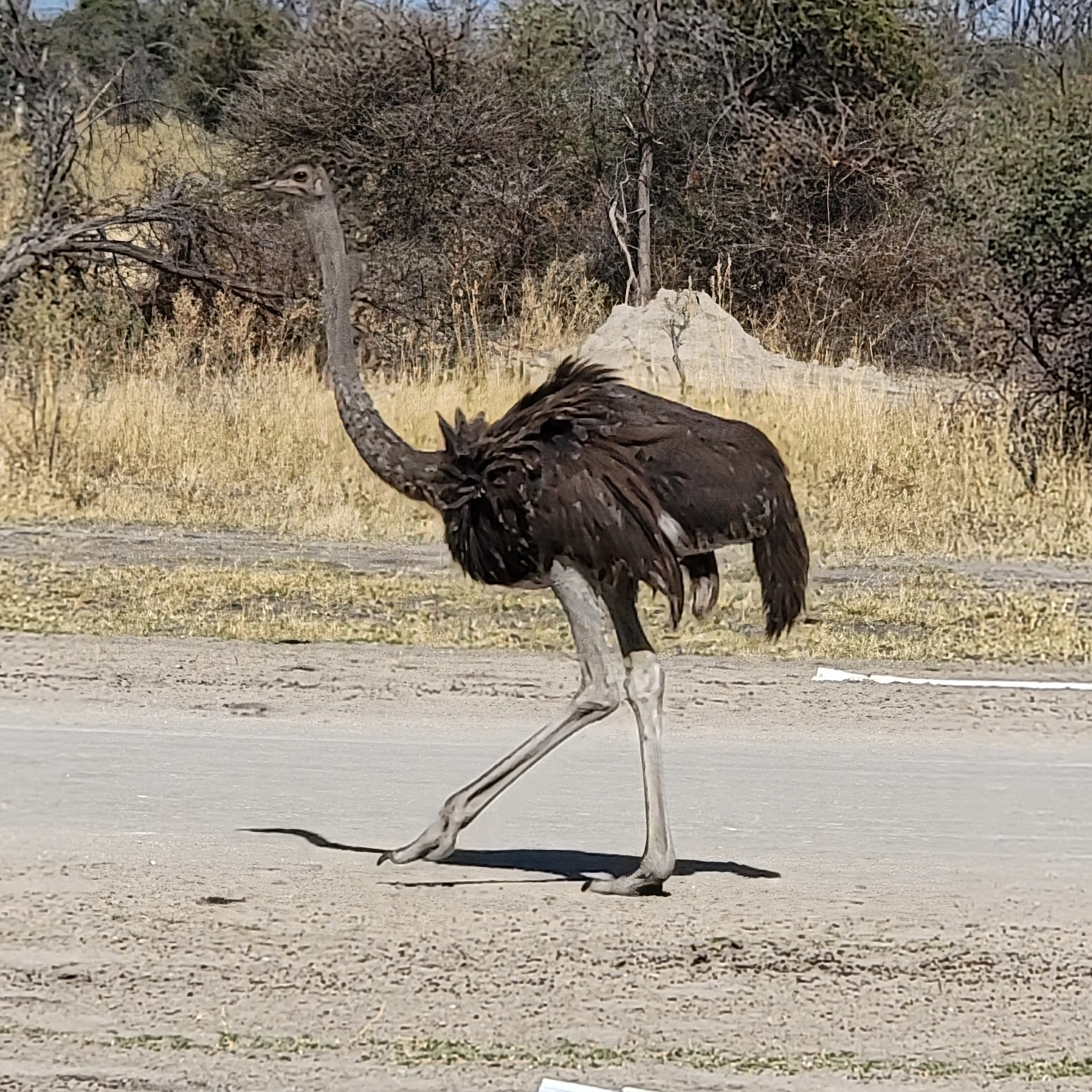 But just so the last picture on my camera reel is not of a dead animal in a tree, here’s a shot of the ostrich we had to convince to get off the runway. Clearing the runway in the African bush so far has been a task to convince elephants, wart hogs and now an ostrich to stay clear for our flights.