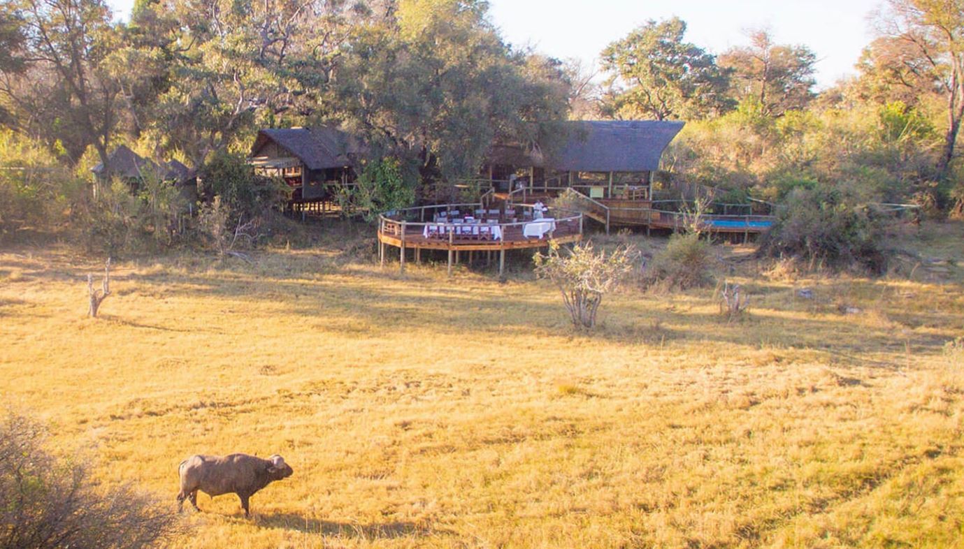 Our last camp in Botswana was Rra Dinare, which in the native language of Tswana means Water Buffalo. And we certainly saw more water buffalo there than anywhere else. The camp is set in a private 100 sq mile concession, adjacent to Moremi Game reserve on the south-eastern side of the Okavango Delta. It overlooks the Gomoti River and its flood plains.
