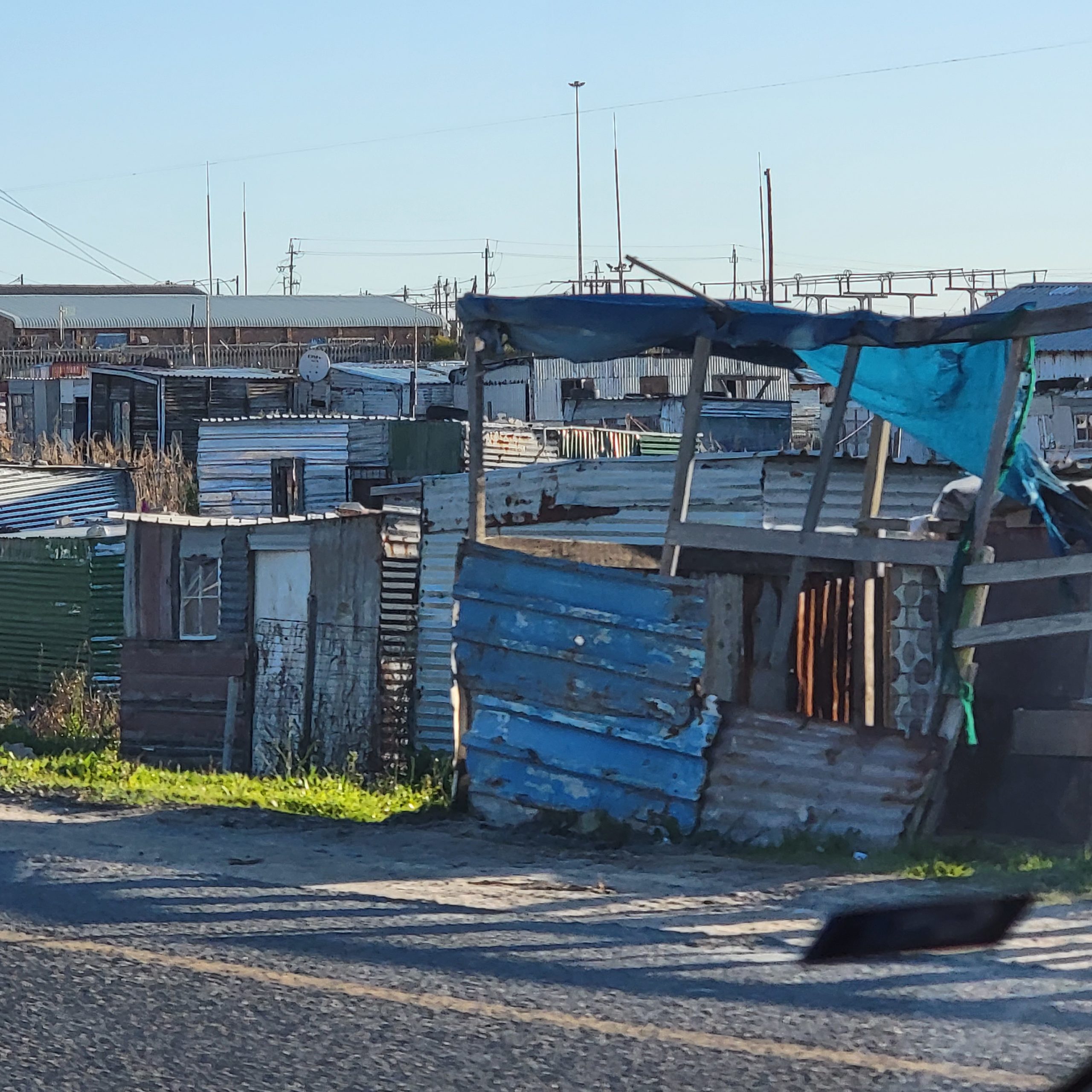 Cape Town is a city of 4.6 million people, dispersed between massively huge shanty towns of metal shacks and imposing mansions on the hillsides with beautiful water views. We spent a couple of days of driving along the beautiful coastline taking pix and ran across this shanty town right at the beach. Our host says that 10 years ago that was not there, it’s all immigrants coming in to Cape Town for work opportunities. It’s definitely pretty grim living conditions, to state the obvious.