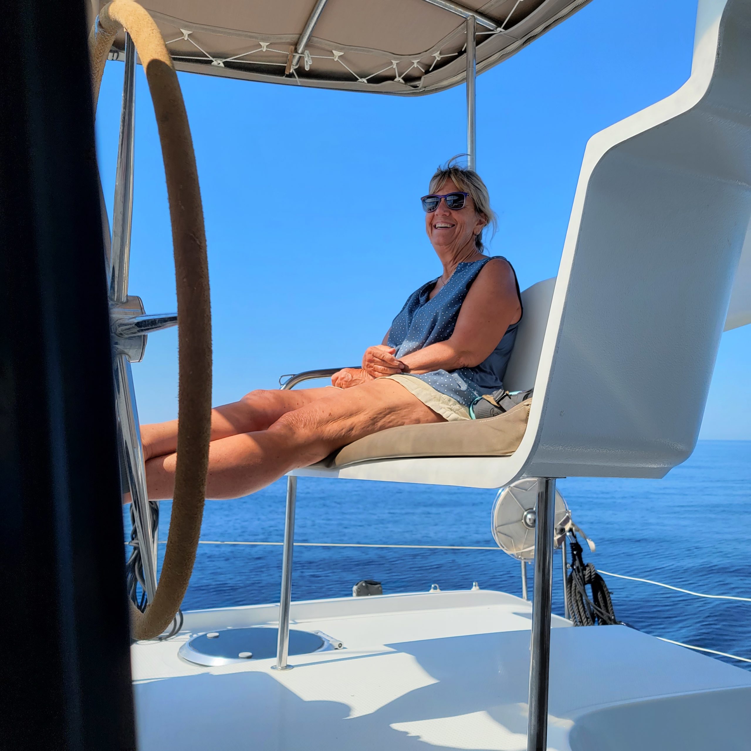 Here we all are on our boat named Lubi. It’s a French built Fountaine-Pajot 41′ catamaran. For a charter boat, this one was in very good shape and a great space for a weeklong party platform.