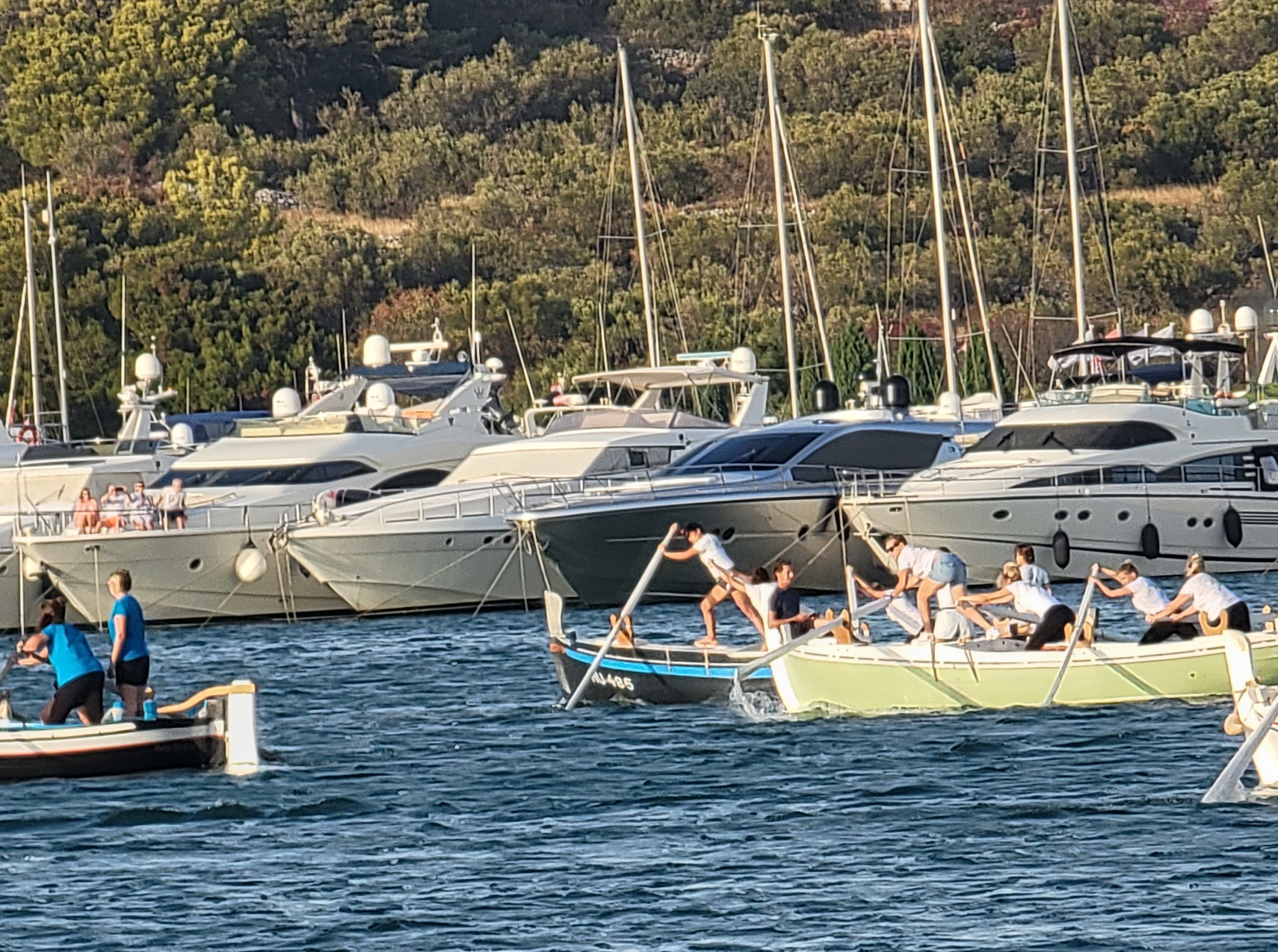 After one more quiet night on anchor, a low pressure system was bringing in some big winds. We had positioned ourselves at the south end of the island chain so we would have a downwind sail back to the base when the winds came up. The night before we stopped in at the island or Murter to wait out the winds. The locals were having a rowing regatta that night, and we had a front row seat to watch the races from our spot in the anchorage.