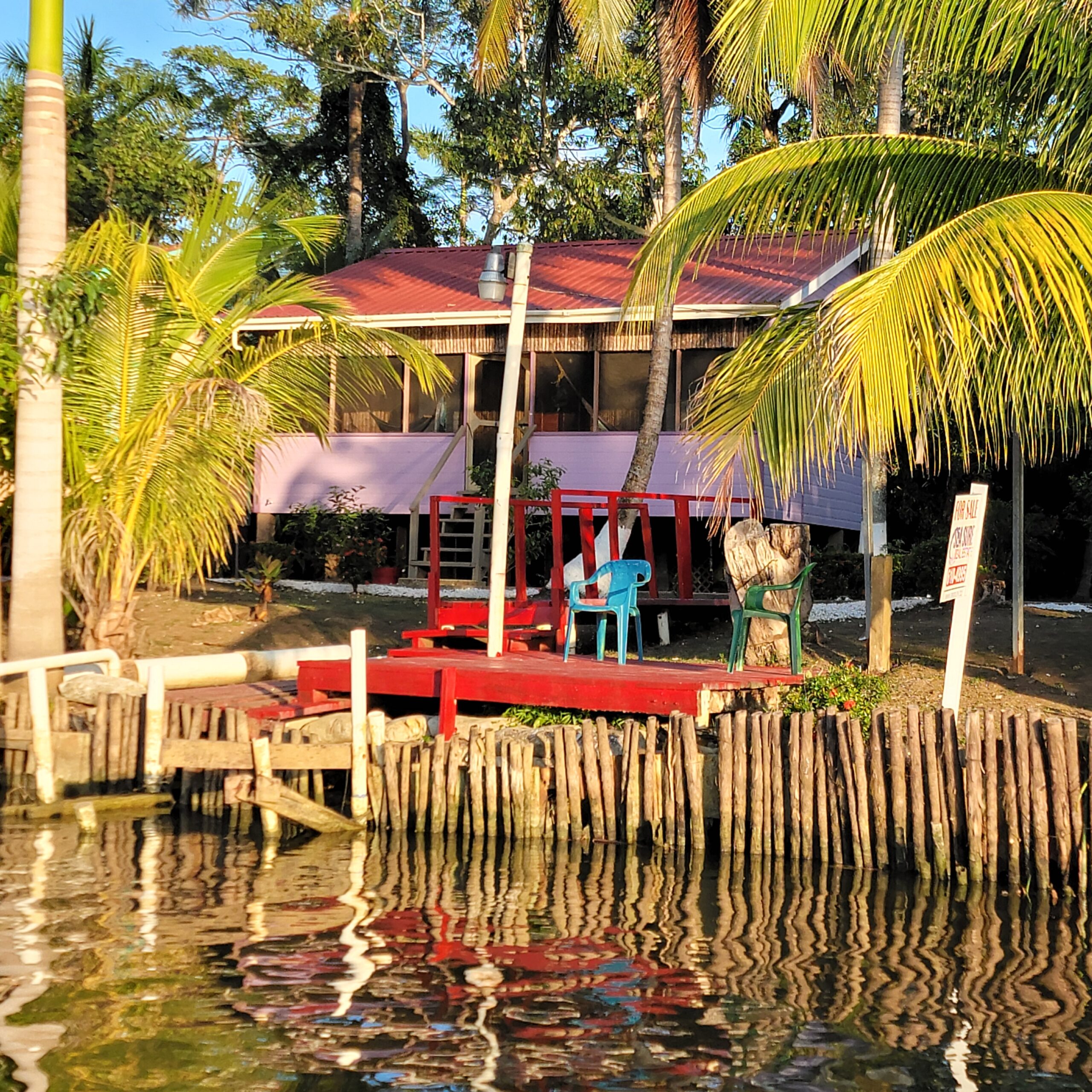 After a direct six hour flight from Seattle to Belize City, I wanted to stay somewhere close to the airport. We knew Belize City is not for tourists – it’s very crime ridden and unattractive. Right after we left they issued at state of emergency for the area because of the crime problems. I found a “resort” right near the airport across the river. When we arrived we found the pictures were not even close to the reality of the facilities. It had barely survived covid and was up for sale. But we had the driver/river boat captain/maintenance man named Ben stop at the store and I made dinner for he and Rob & I and we made the best of it. It did make me nervous, though, about the remaining spots I had booked in other locations.