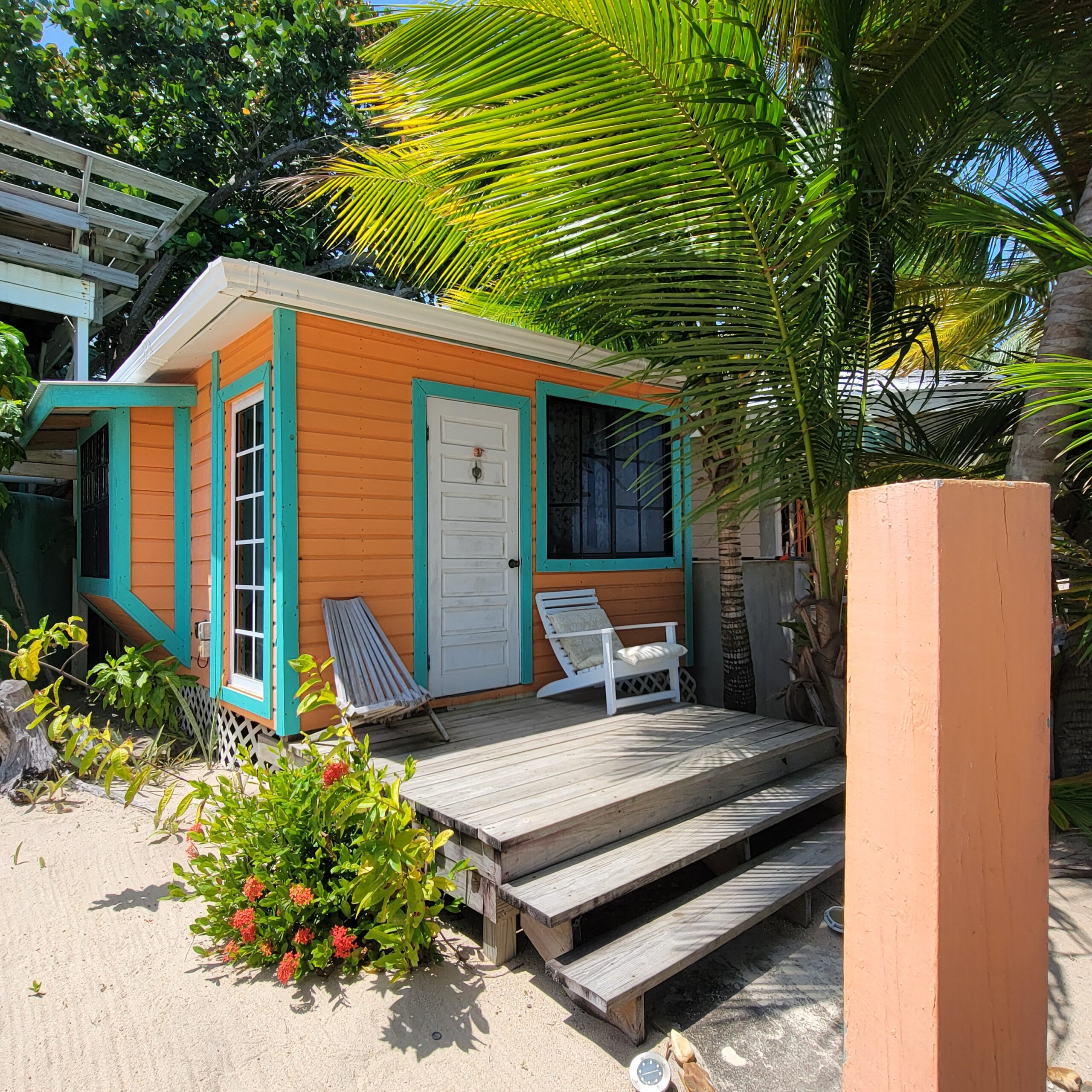 We stayed in a VRBO hosted by a super nice guy from Austin. It was beachfront with a private dock and beautiful beach. The barrier reef is very close to the Caye, and we could watch the boats sail past in the gorgeous and warm turquoise waters.
