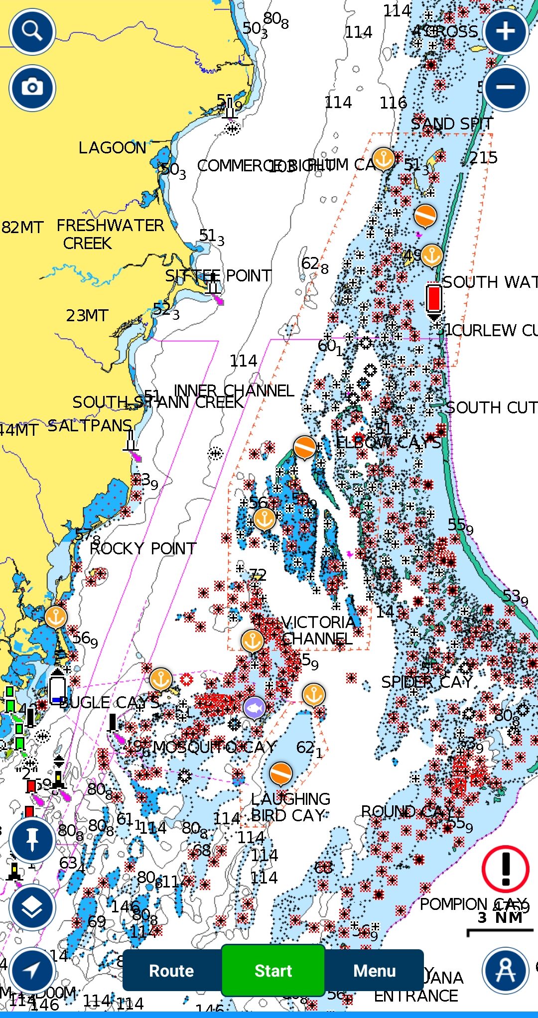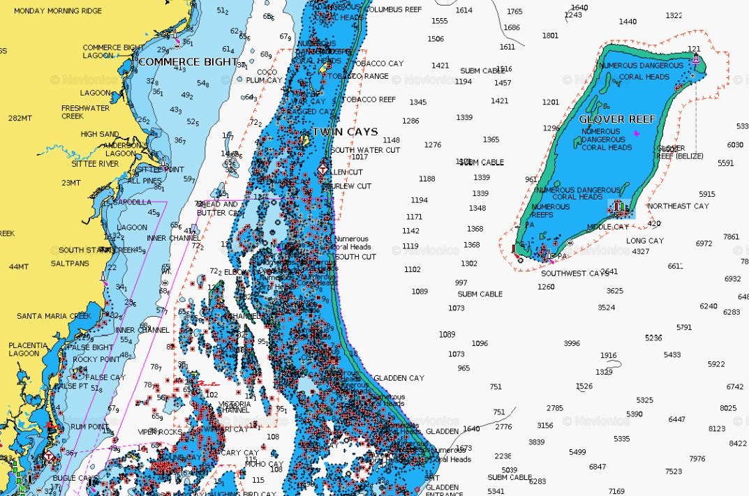 As always, I had been doing tons of research, reading the cruising guide and watching the chart briefing from the Moorings and talking to the dive shop about where to dive and where to be picked up from. I had searched through the charts to find the little spots where we would anchor among all the coral and shallows inside the barrier reef. So we set out the first day and headed to Lark Caye where Go Sea Tours would pick us up the next day for a dive out at Glovers Reef.