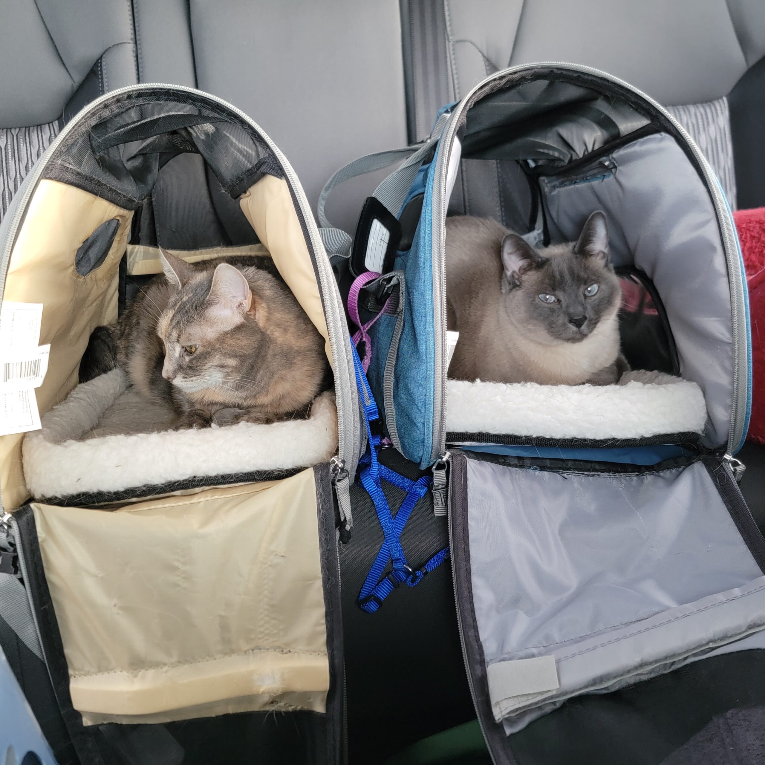 Of course the Black Ball ferry from Port Angeles to Victoria was down for maintenance, so we headed out and across the Canadian border to Tsawwassen. The kitties ride along in the back seat without a peep. We first saw snow in Bellingham on the way north, then not again until the next day.