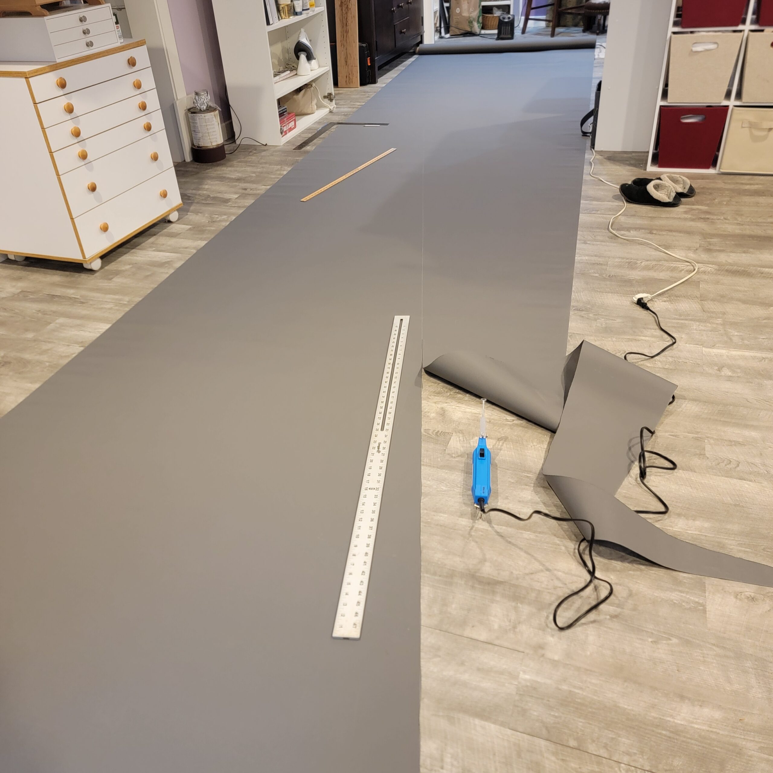 And took the opportunity to buy a nice new blade for my hotknife. This way I can cut anywhere without damage to the surface below. I’m still not very good at cutting a straight line, but you can’t tell with all the seams finished on the final product.