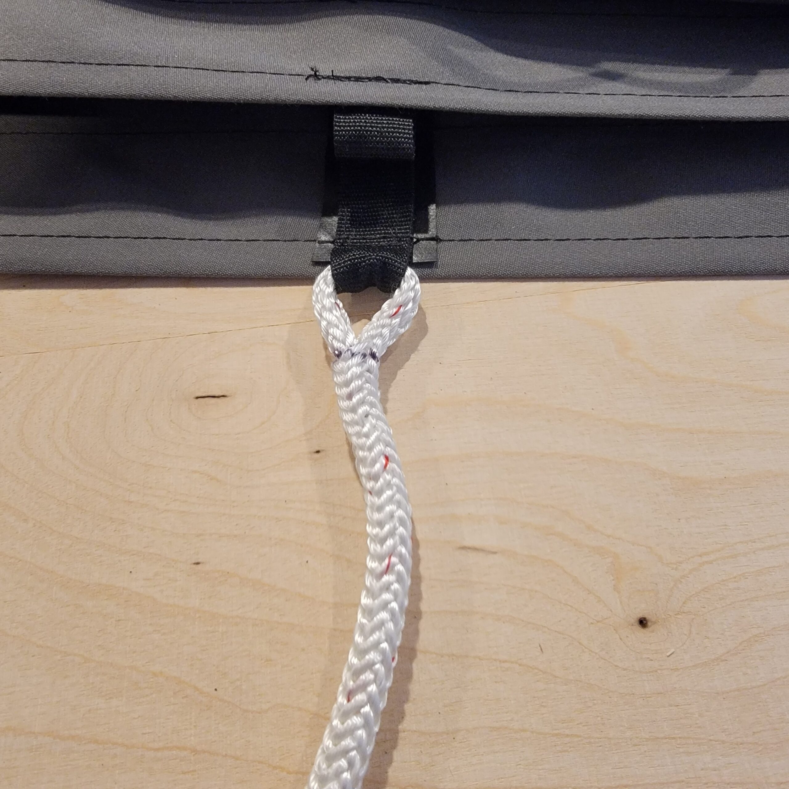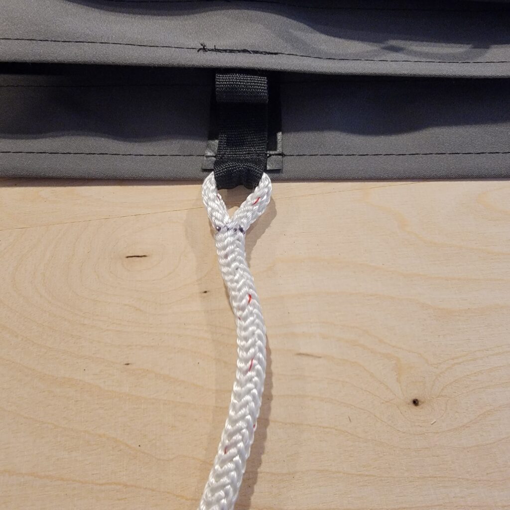 This is a finished splice, with the line secured to the top of the stack pack. In retrospect, what I realize now is that when the stackpack comes down for cleaning it’ll be tough to just toss it in the washer with all the lines spliced to it. Will have to think about that.