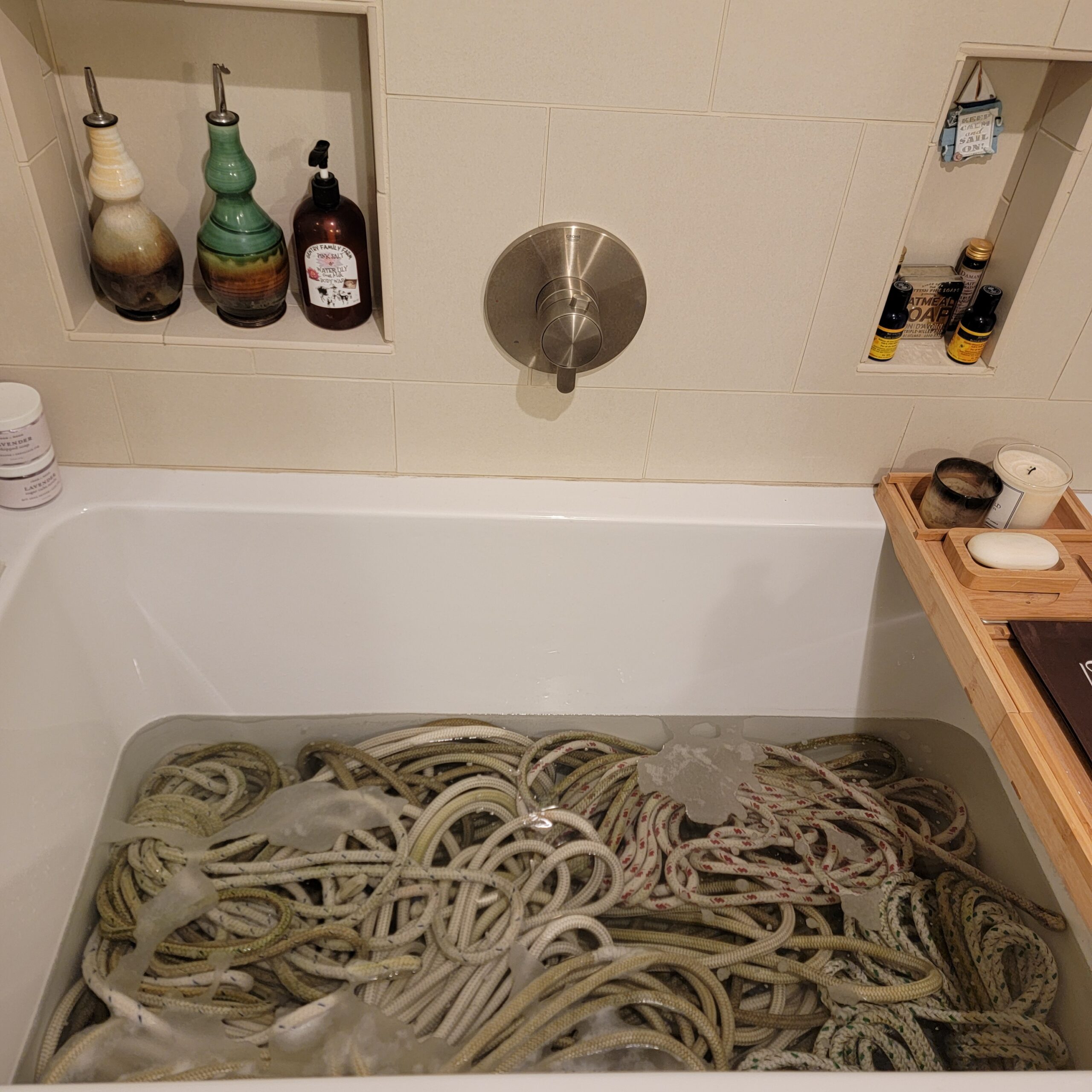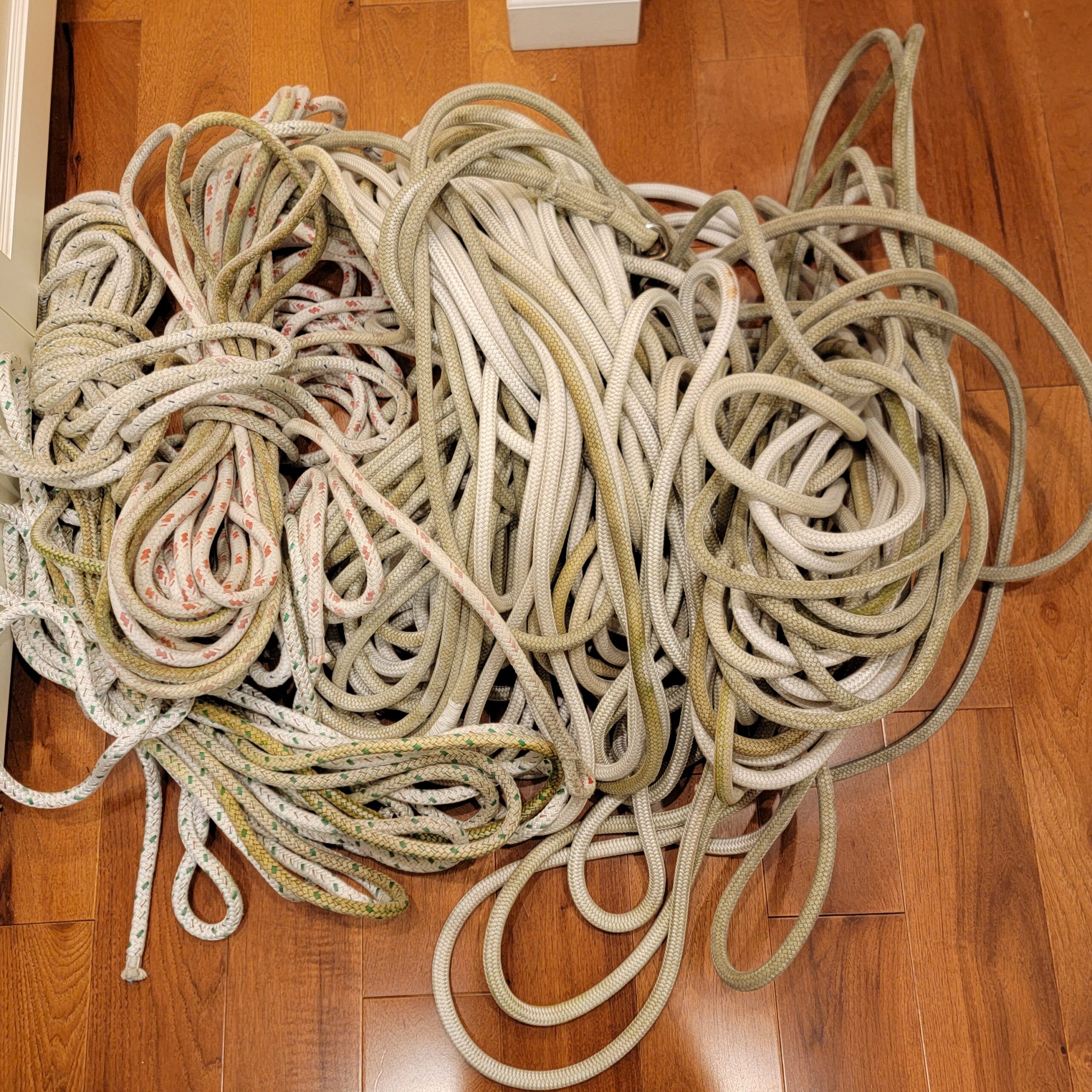 The first of those items was pulling down all the running rigging and taking it home for a bath.