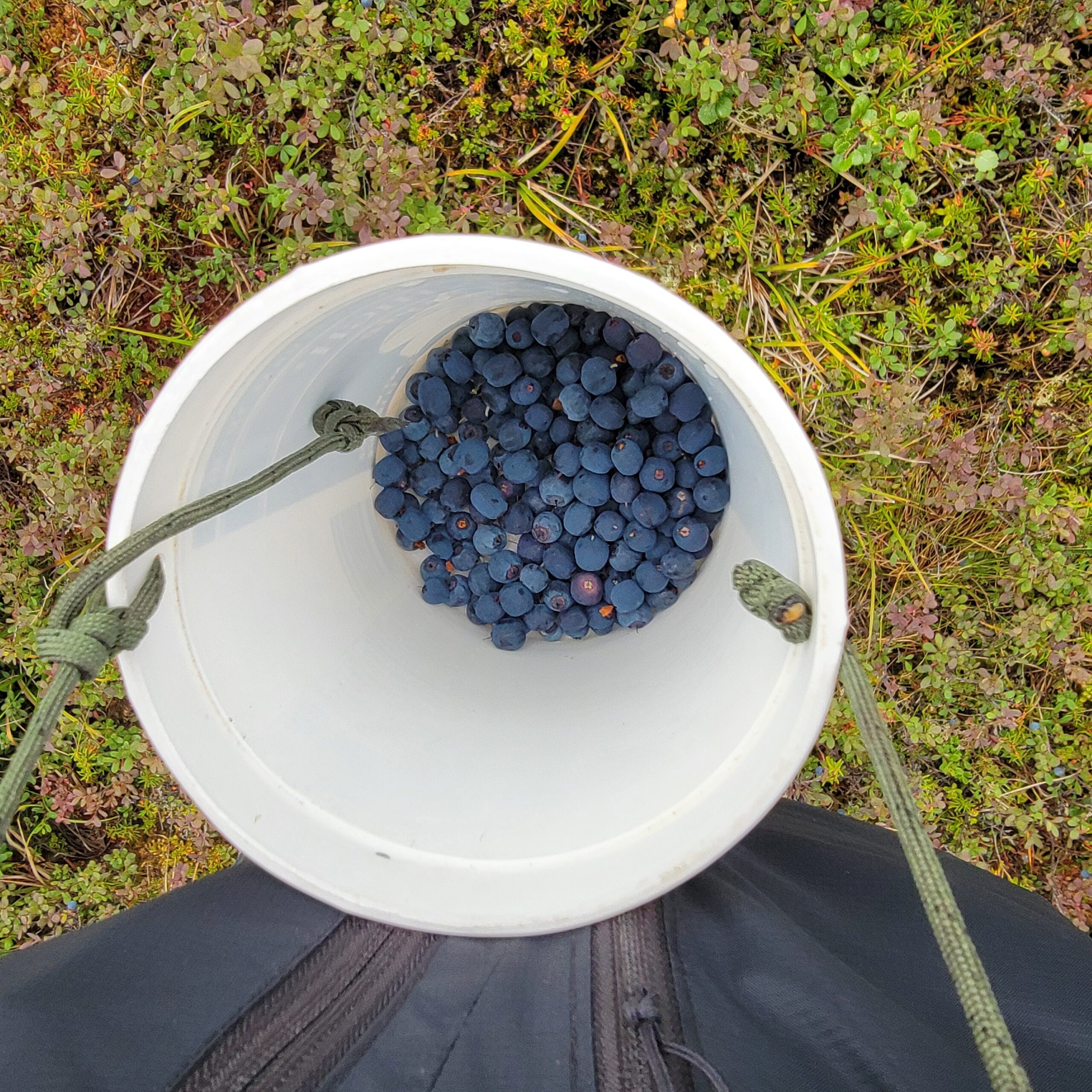 Even Alex got serious about bringing home a bucket of wild blueberries.