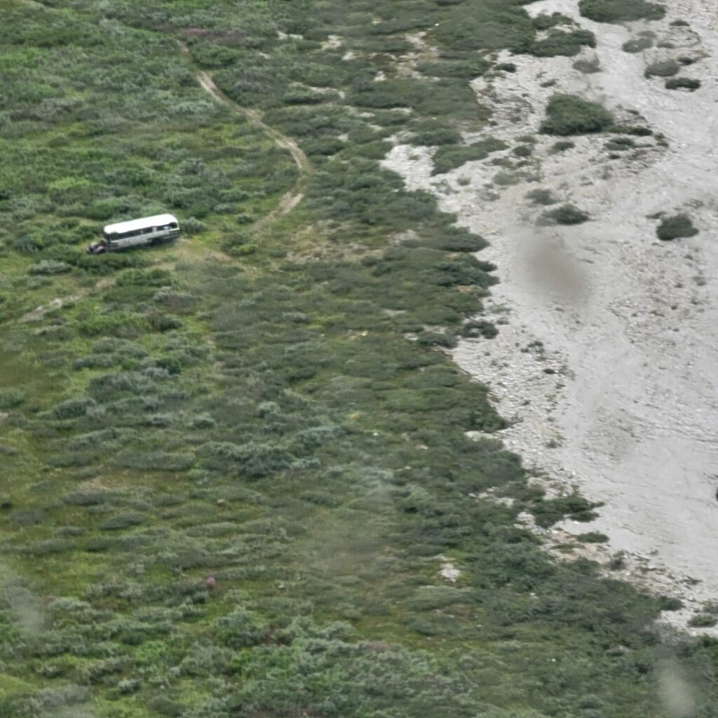 At the bottom of the pass is “the bus”. It’s not the Chris McCandless bus from the book “Into The Wild”. It was hauled in there long before my first ride in 1986, and now is pretty much trashed. We used to stop there for lunch on the way in, but now it’s so messed up the horses don’t want anything to do with it.