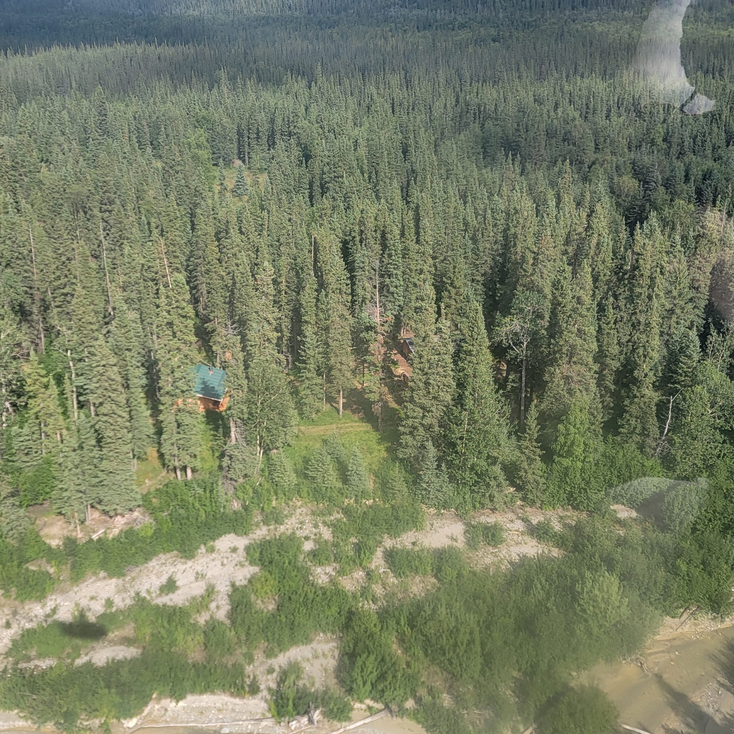 One of Debby’s requests was to fly over all the cabins she will ride to next week. It’s time to take the horses in for hunting season. For decades Debs has ridden in and never known exactly what condition the cabins would be in when they arrived. Would there be snow damage, grizzly damage, or has one just fallen over like this one above has been trying to do for years? She was super happy to see it’s still mostly standing, and will provide shelter from the weather and bears for one more year when they get there.