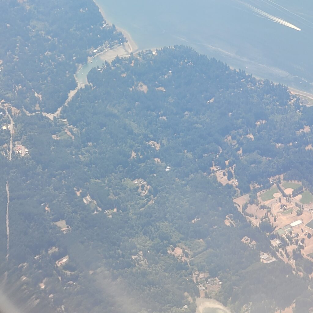 Here’s a look down at Fletcher Bay and our little house in the woods on Bainbridge. We flew right over on the way home.