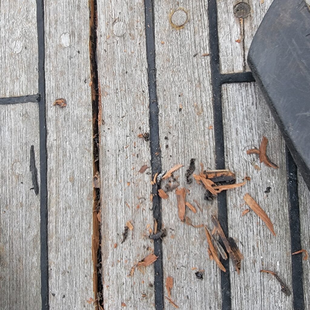 After we started sailing this spring, the decks gave us a very clear message that it was just time. This is only a small piece of the side deck, but the entire boat pretty much looks like this now. The good news is that we already knew, and have the logistics and workers in place to get this work done this winter.
