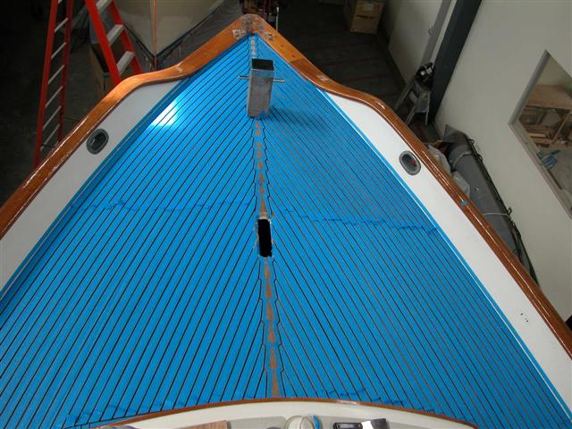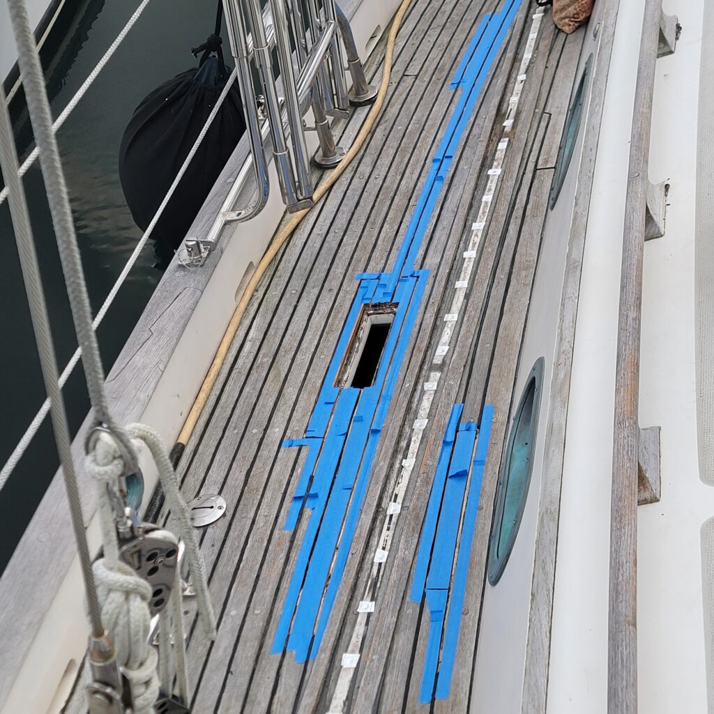 This is a repair he made last fall. The prism was leaking, boards were cracked, the jib track was leaking. The boat was basically a swamp below in the Pacific NW rainy winter, and we spent a lot of time trying to get her to stay dry.