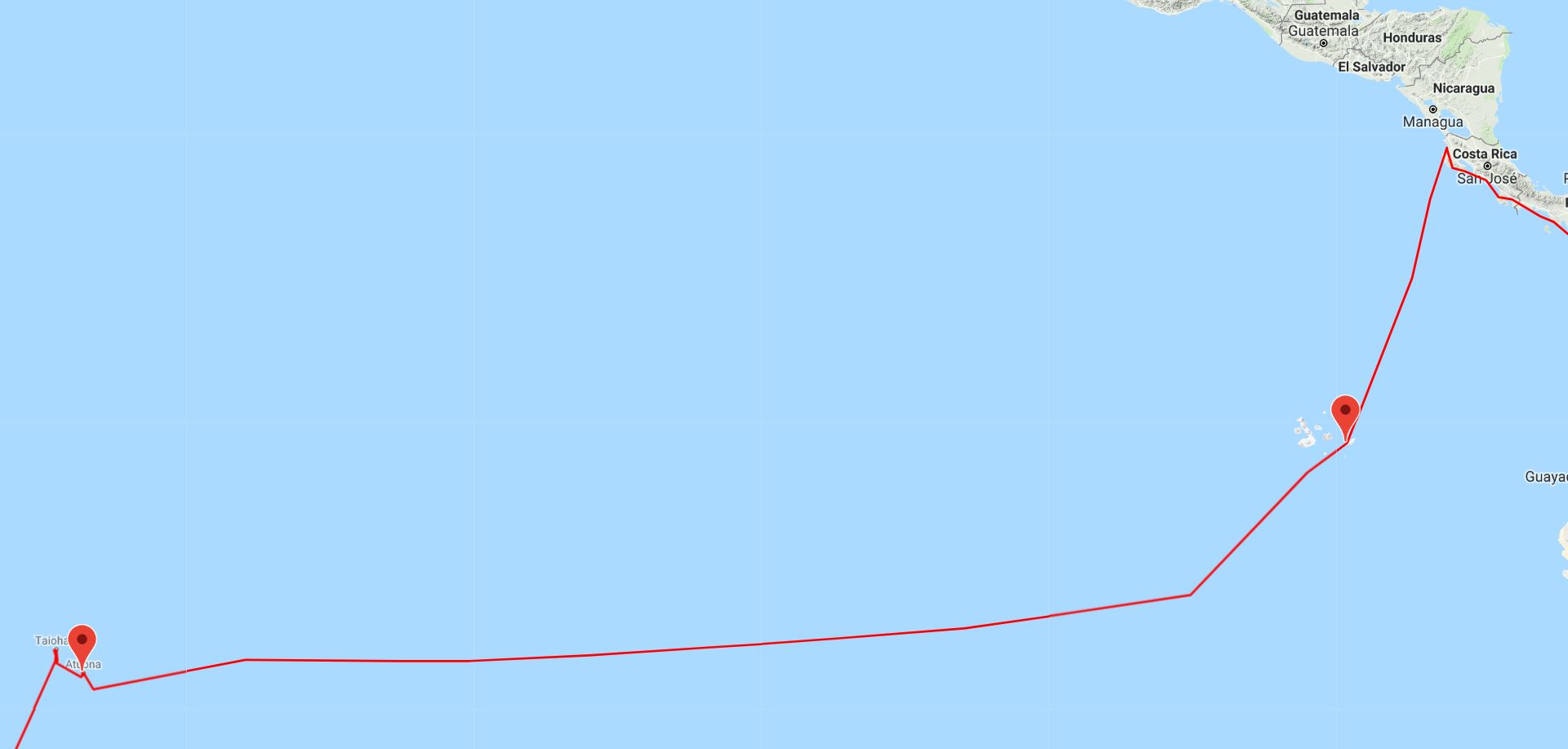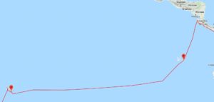 It’s very very slow going out here. Actually, we’re basically drifting with the current watching the spinnaker fill and drop about every 4 seconds. The good news is the current is 1-2 knots and in our favor. And the better news is that there is wind south of here – it’s just going to take a few days to get to it. Our current plan is to drift and sail as best we can during the day and then motor slowly at night. Last night we got incredibly lucky and had 12 knots of wind on our aft port quarter and sailed along with a spectacular full moon until about 3:00 am. We’re hoping for the same tonight.