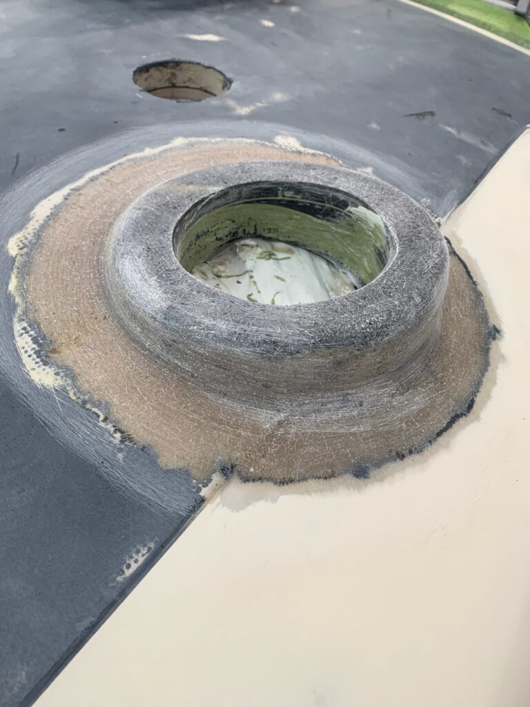 The cabin top still needed fairing before it was prepped for nonskid.