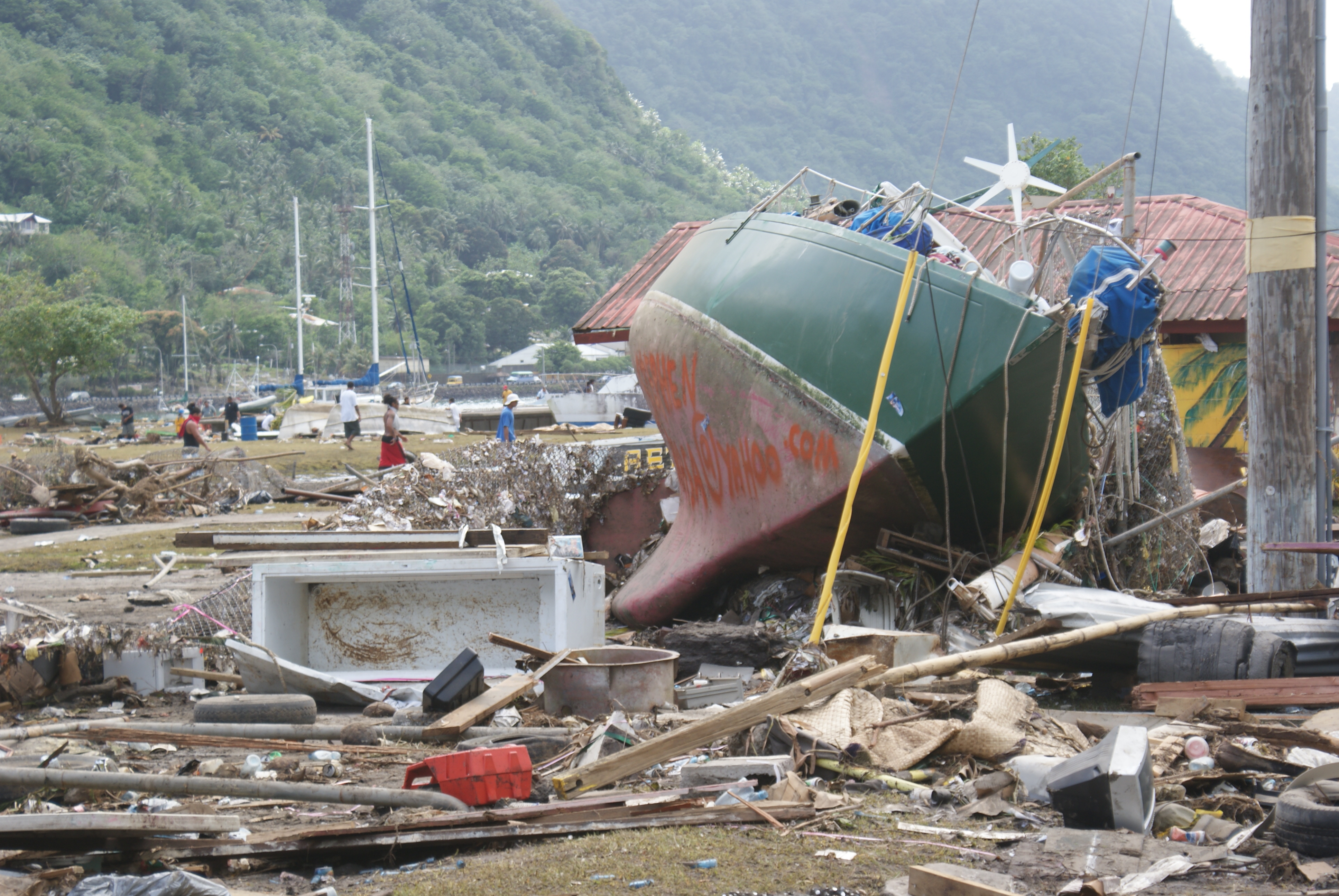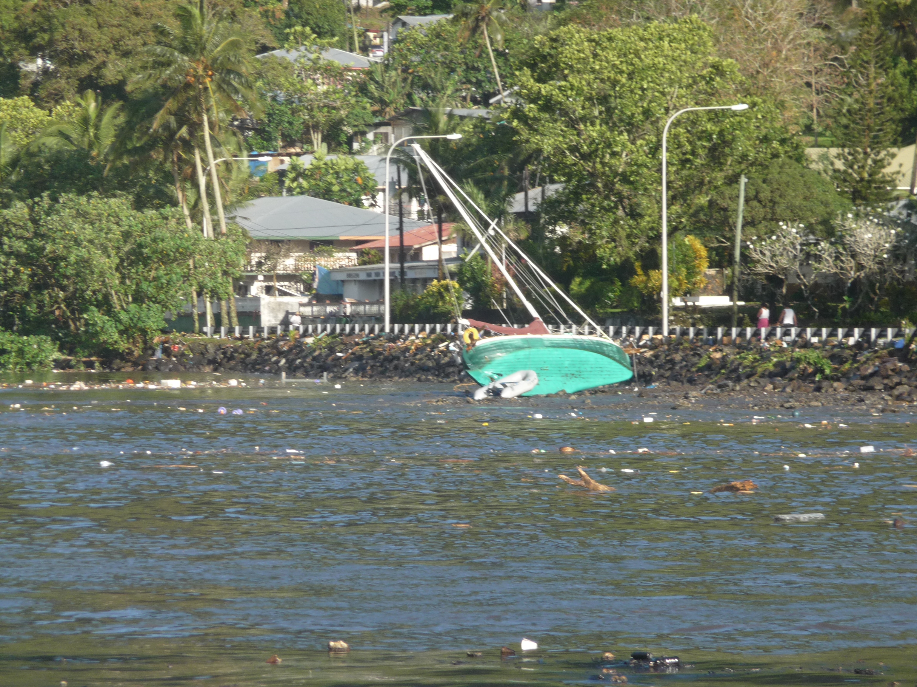 The saddest tsunami report for us personally is of Dan on Mainly, who was swept away trying to free his boat from the wharf in Pago Pago. Joan, his wife, was able to motor the boat to deeper water until it was safe to return to the wharf. Ironic that both Joan and the boat were unscathed. Sad that she discovered his body when they brought it to the morgue at the local hospital. Sad. And of course, we shouldn’t forget that over 130 other people who lost their lives, mostly due to the tsunami.