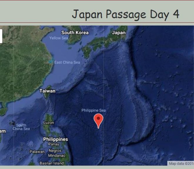 Miles Total: 1,507 Miles To Osaka, Japan: 155 Cabin Temp: 75 Water Temp: 69 I was wrong in the last posting about being back in…